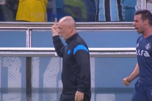 体育资讯11月26日讯 当格雷米奥在对阵帕尔梅拉斯的比赛中庆祝扳平进球时,主帅马诺·梅内塞斯将怒火发泄在了坐在替补席后面的一名球迷身上。