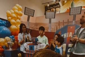 从网上流传的照片来看,梅西一家举办了巴萨主题派对,为蒂亚戈庆祝13岁生日。